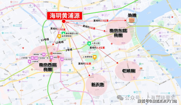 约2.5公里内涵盖南京东路、人广来福士、外滩、新天地、淮海路、老城厢等顶级商圈和地标。