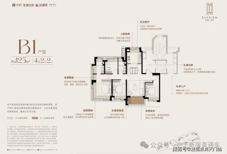 建面约125m²,约1000万起即可上车更舒适的边套四房!