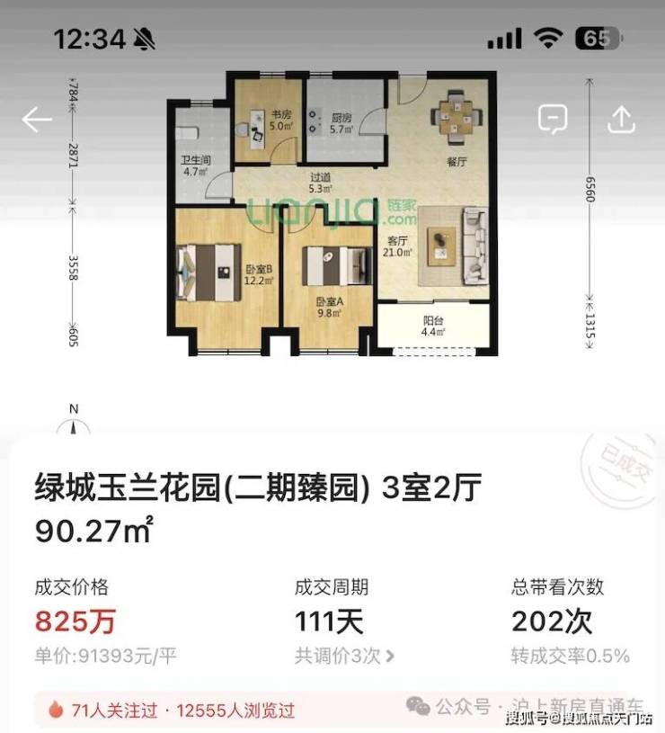 首批均价在7字头,而相比旁边绿城二期今年成交一套90m²小户型,单价9.1万,比保利天奕最贵的一套小户型单价还贵出近1万/m²!