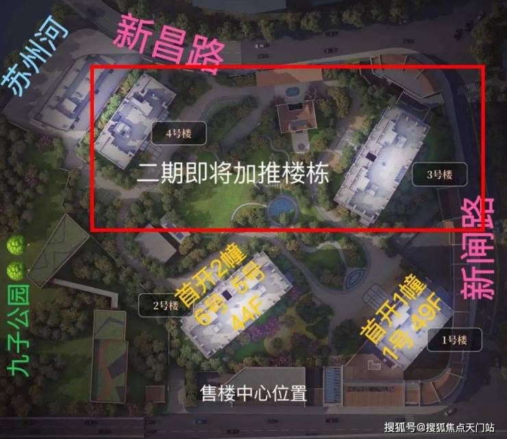 其中3#为超高层,北向可观小区绿化和苏河景观,高区可瞰三件套盛景。