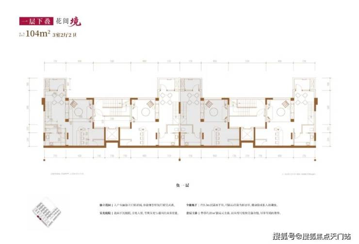 建面约82㎡2房2厅2卫/110㎡3房2厅2卫(四层上叠):