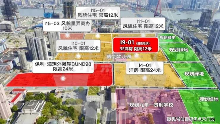 地块北侧,去年11月28日,保利发展&上海建工以总价28.71亿拿下杨浦区N090601单元I5-01地块,楼面价81960元/㎡ ,溢价率17.09%。项目案名 保利·海玥外滩序BUND98 ,于今年5月中旬首开,两次开盘认购率均超过200%,整盘成交均价约12.7万/㎡。