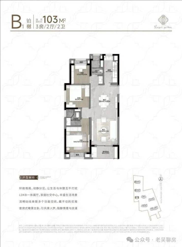 5) 户型产品一般98、100平户型产品只做到了2房,该盘103平以上的房型又都是3房,很显然 小户型比较鸡肋,没有实用性;而且小户型是 中间套带连廊,私密性不佳,缺点非常明显。