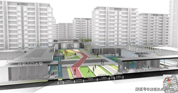 据悉社区由自持住宅、可售住宅、社区配套三大功能组合而成,北区为公区自持配套区,中区为住宅社区,南区为住宅社区及配套。