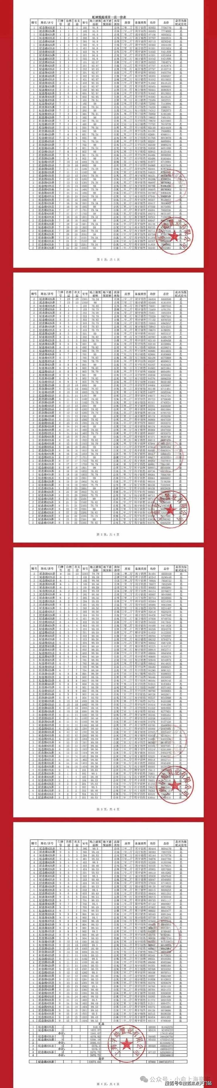 一房一价表:
