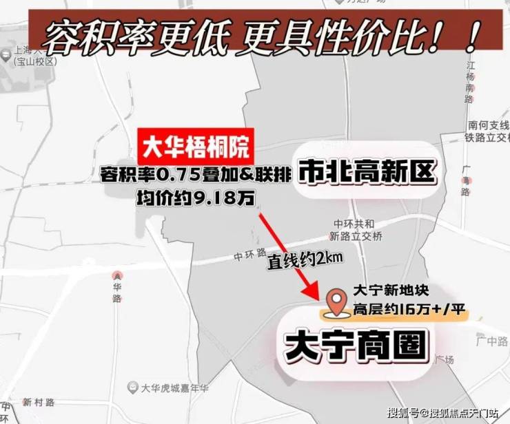 ② 其次,项目与市北高新区&大宁商圈的直线距离仅约2km,大宁高层的价格可以买到大华梧桐院的高阶改善别墅!