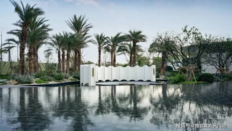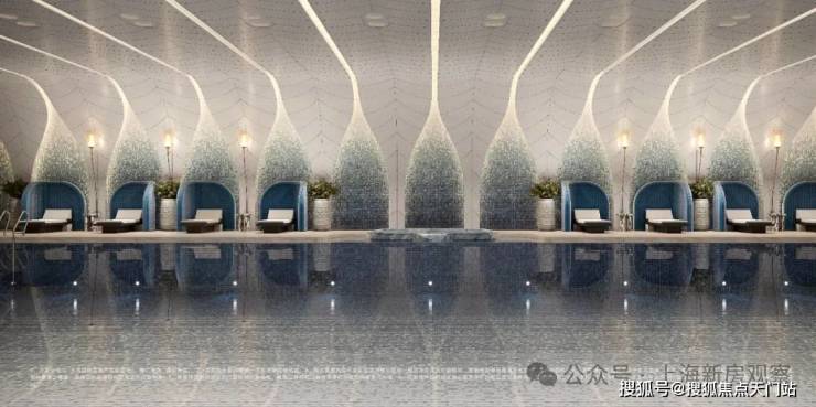 从示范区的打造上来看,保利打造了度假感氛围!采用了国际度假酒店的打造手法,从门头、 具有海蓝色的水景 、 海岛感的花园植物 , 丰富艺术品的植入 ,以及非常亮眼的 上海首个浮雕水景艺术卡座 ,营造轻松、惬意的氛围,像这样的松弛场景在项目中数不胜数,给到客户强烈的度假感和松弛感。