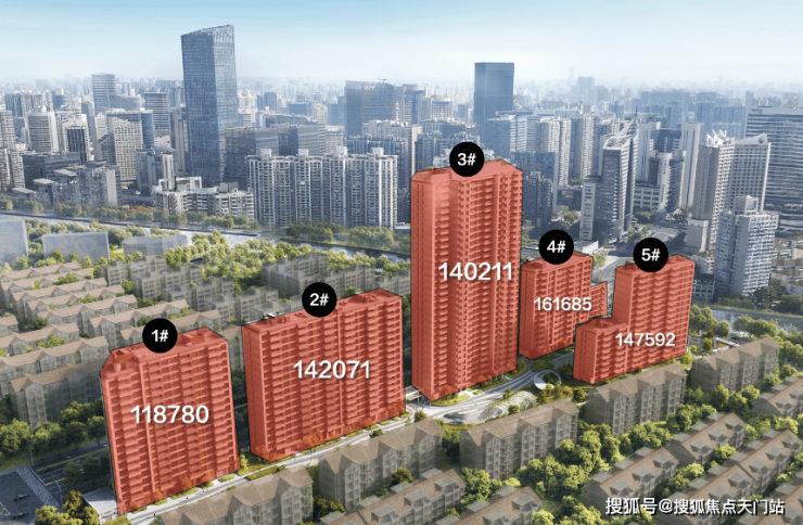 项目占地1.7万㎡,住宅面积7.1万㎡,容积率4.52,整体规划为 4栋8层至17层小高层及1栋32层高层住宅,总套数仅有481套,户型为建面 约88-329㎡一至六房。