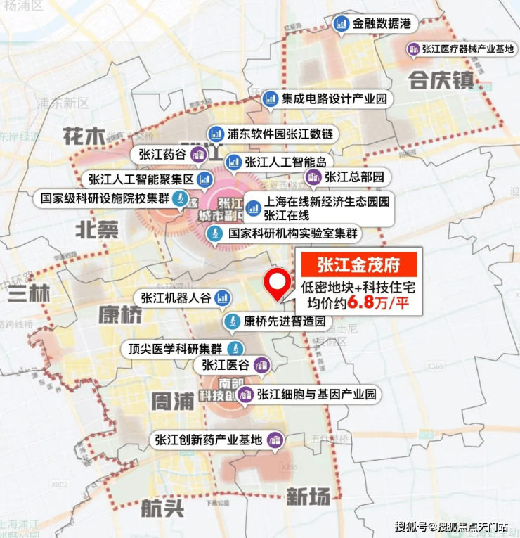 不仅如此,距离张江金茂府约1.5公里处就是中学用地。