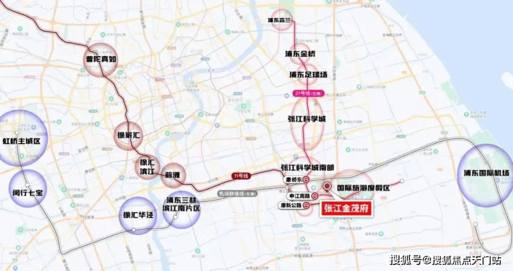 未来机场联络线快速通达浦东机场、上海东站、莘庄以及虹桥商务区,轨交21号线南北向通达张江科学城核芯、森兰国际社区等。
