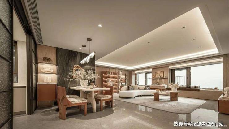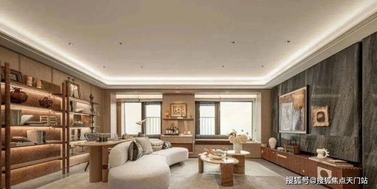 示范区大量运用数十种原石打造,例如社区入口处揉石成缎的葡萄牙沙漠风哑光面石墙,采用了十几道复杂工序,水刀雕刻、高精抛光仅是前奏,喷砂、浮雕与镶嵌等高难技艺亦是中段,最终展现完美的光泽与细腻触感,形状上还原风的褶皱,展现独家的质感和归家仪式感。