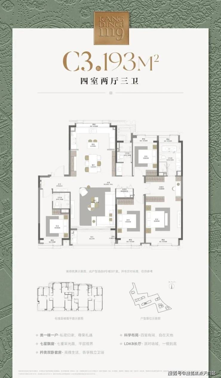 193㎡户型完全就是豪宅的大尺度!保守的说,可以跟市面上几乎所有230+㎡户型对标!