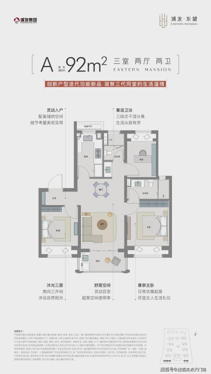 建面约92㎡3房产品市面上大多都是1卫的设计,但浦发东望为2卫的设计,实用性超高的同时,空间也较为宽绰。