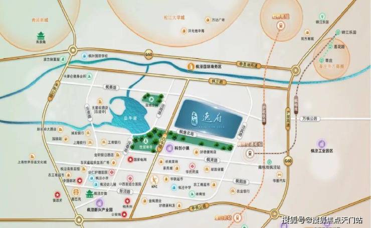 商业方面,项目南面约500米处有枫湾路菜市场及盒马超市;南面约800米处有肯德基、联华超市、农⼯商超市等配套。项目旁边在建的五星级劲霸枫泾酒店,这将是金山第一个五星级酒店。