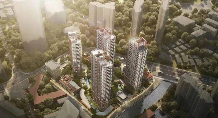 外滩瑞府突破市区项目常见的「兵列树阵式」布局,通过建筑楼体的精密偏转,形成罕见的围合式社区形态。