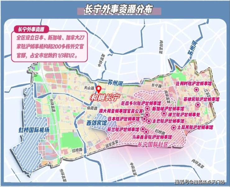 “外事客厅”的独一份定位,离不开长宁独一份的国际交通枢纽优势。作为 全上海仅有与虹桥机场、高铁站“双枢纽”直接接壤的城区 ,其核心区域通过轨道交通、快速路网构建起 “15分钟国际通勤圈”。