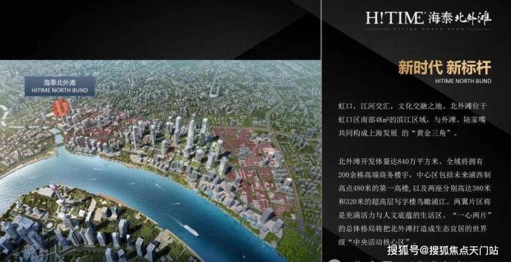 根据上海规划资源局新规划,北外滩将按照“高标准、高水平”的总体要求,以“世界级会客厅”和“具有全球影响力的世界级滨水区”为目标,与外滩、陆家嘴共同打造“黄金三角”核芯商务区的战略高地,并提出“三年出形象、五年出功能、十年基本建成”。