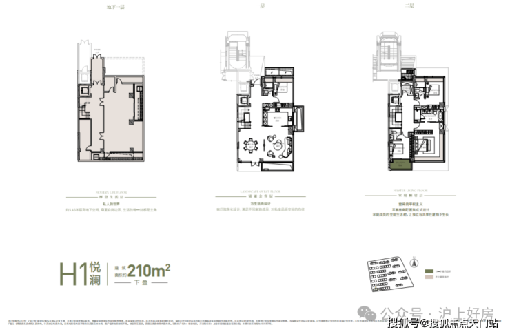 建面约182㎡ 下 叠 :庭 院+地下室(含夹层)+阳台的整体 附赠空间约210㎡ ;