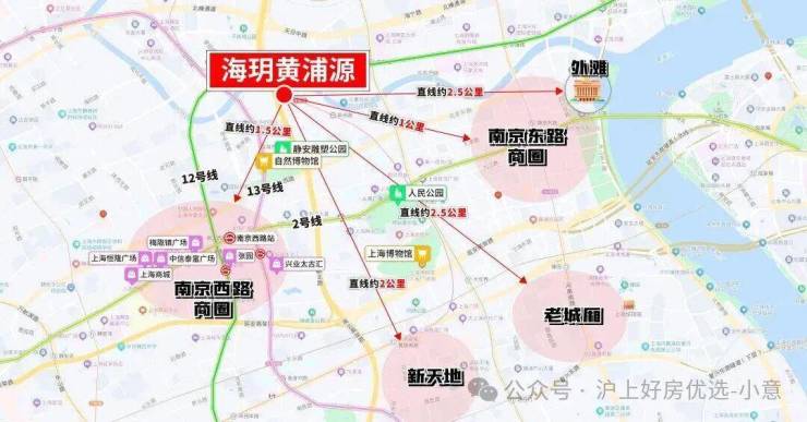 约2.5公里内涵盖南京东路、人广来福士、外滩、新天地、淮海路、老城厢等顶级商圈和地标。