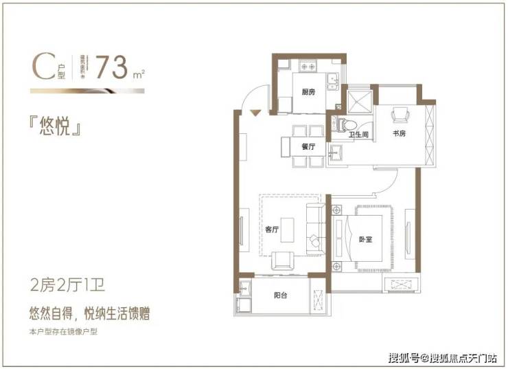 73㎡悠然两房格局方正,布局合理,73㎡的面积设计有一卧室、一书房、一餐厅、一客厅、一厨一卫还带一阳台,满足日常生活所需,且空间充裕不显拥挤,这个户型本批次只有两套,真正的手慢无!