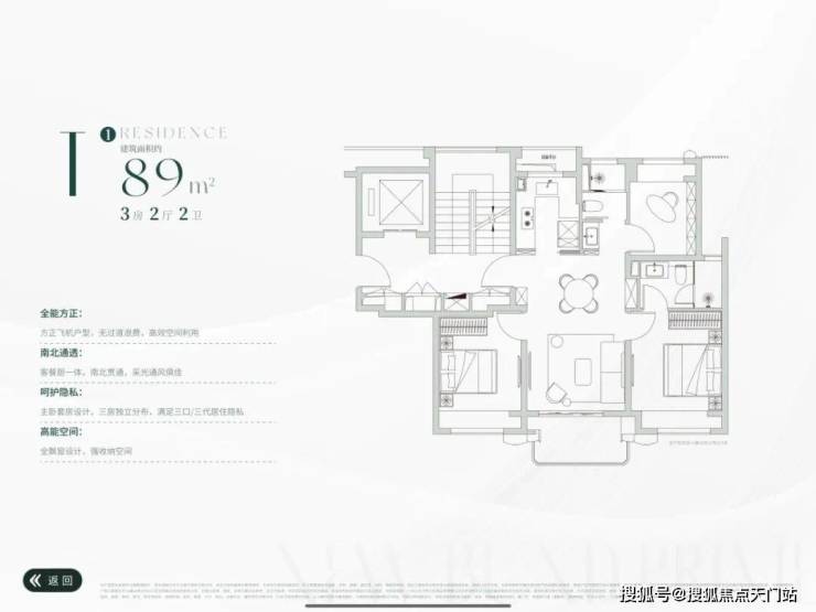 正三面宽朝南,观景阳台+满飘窗配置,提高实用空间,也拓展视觉体验。