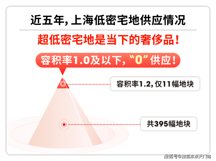 据统计,近5年,上海共出让395块宅地,其中,容积率在约1.2以下可以用作开发低密宅地仅有11副。而容积率1.0及以下的地块,供应居然为“零”!