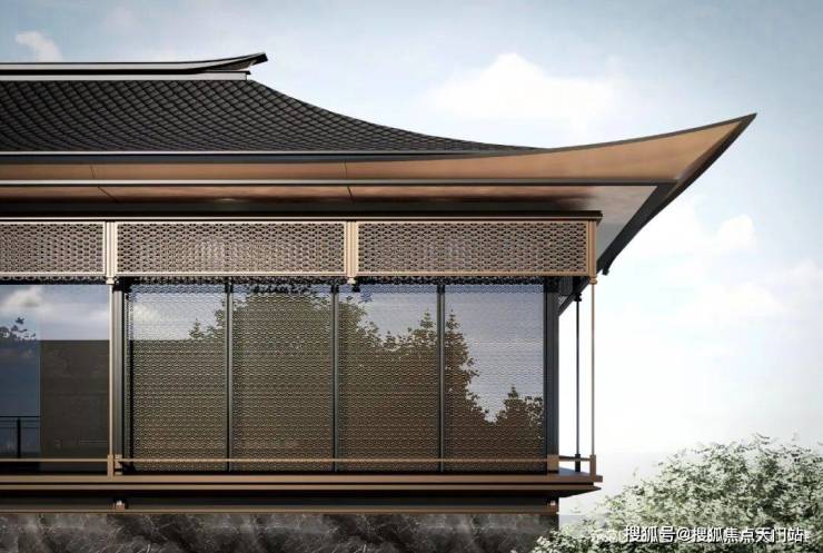 在建筑立面上,项目以当代设计语言,对东方诗意进行了一场精密的转译。轻盈的飞檐与错落的戗角,与通透的玻璃幕墙、沉稳的石材肌理,构成了一场关于时间与光线的对话。