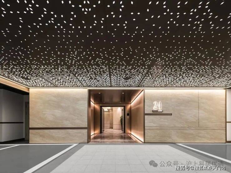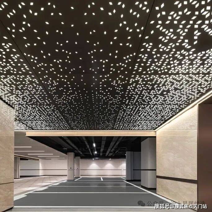 ▶地库的星级仪式:白金砂石材铺装,古铜金属镶边,星光穹顶营造银河归家仪式