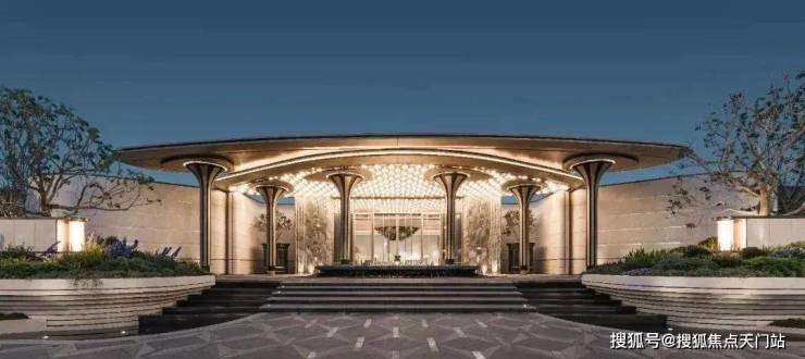 项目恢弘大气的门头,项目设计师以浮岛为灵感,将几根立柱化作悬浮的雕塑,撑起一片轻盈的仪式感。