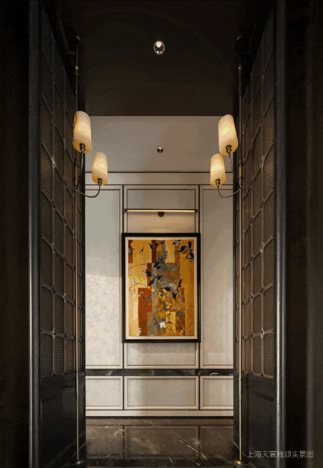 门厅,作为建筑空间的第一重呼吸,在摩登且包容的主基调上,汲取西方古典园林的轴线秩序感,同时在细节处融入了东方留白的智慧,并以黄金比例分割的线条韵律与考究材质的肌理对话,让这个过渡空间成为兼具当代美学精神与人文温度的仪式场域,让居者于此处完成从外部世界到内心居所的优雅转译。