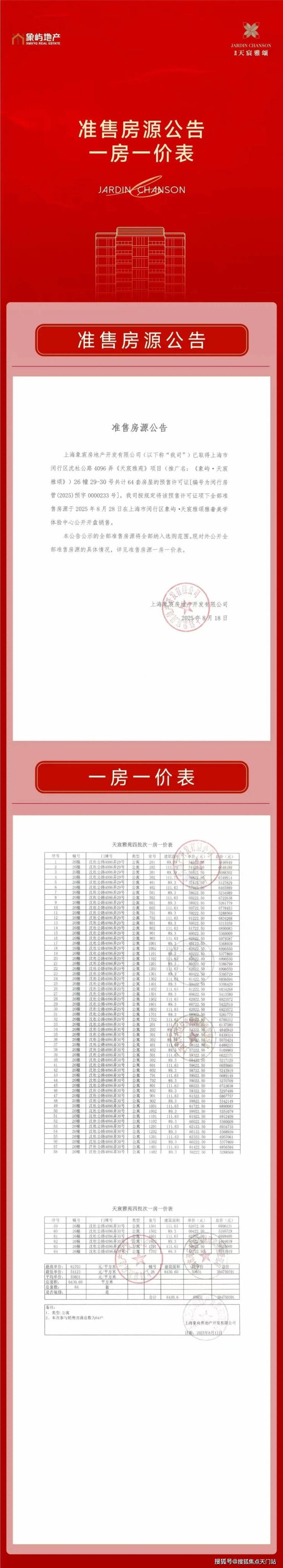 一房一价表!