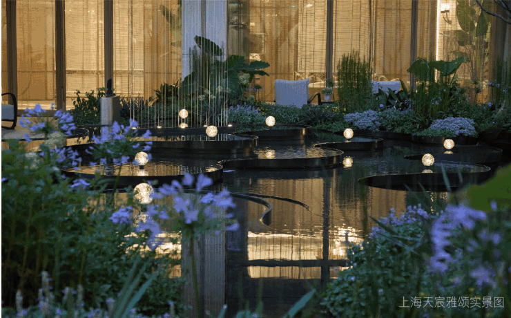 以匠心雕琢光影水韵之美,层叠水景与灯光延展出优雅的序列;以传奇的蒂芙尼蓝为灵感源泉,采用独创的U型玻璃熔铸工艺,将琉璃的梦幻光泽与水的灵动质感完美融合。