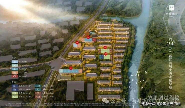 项目规划了9栋6层洋房、9栋4层叠墅、18栋3层滨水合院。打造了稀缺的低密产品。
