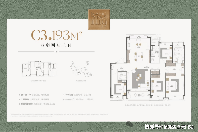 最新消息! 老静安核芯睽违已久的品质豪宅「康定壹拾玖」在售建面约177-238㎡楼王4房;均价17.18万/m²!总价2800-4600万!收官在即,错过不再有!精装车库 约3000平的会所;样板间展示线上火热预约中!