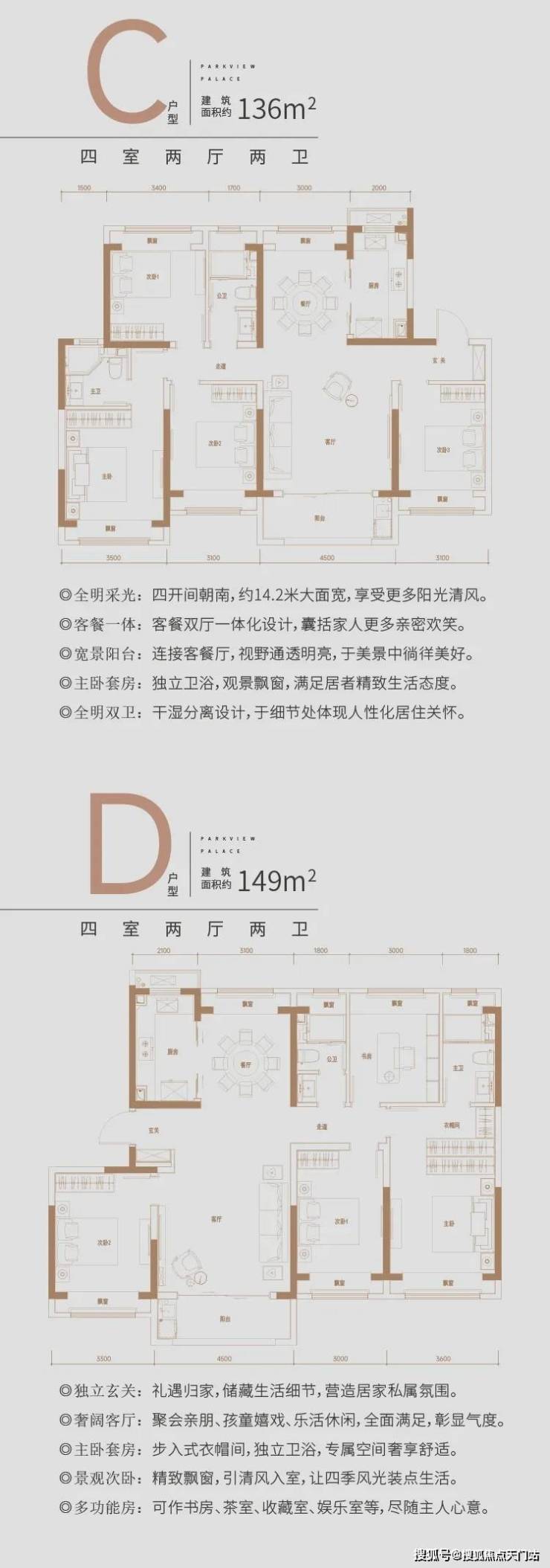 建面约166㎡奢境户型,南向四开间面宽可达约16.2m,约6.2米宽厅连接宽幕阳台,突破性尺度设计,带来通透的全景视野,一眼望向城市自然与繁华,居住于此,大平层的尊崇奢居体验油然而生。