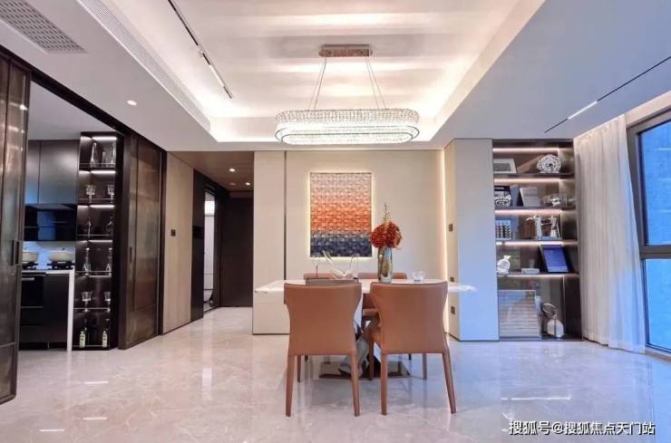 就拿餐厅而言,这个户型可以放下一个5-6人的圆桌,可以满足一大家子围坐大圆桌吃饭的需求。