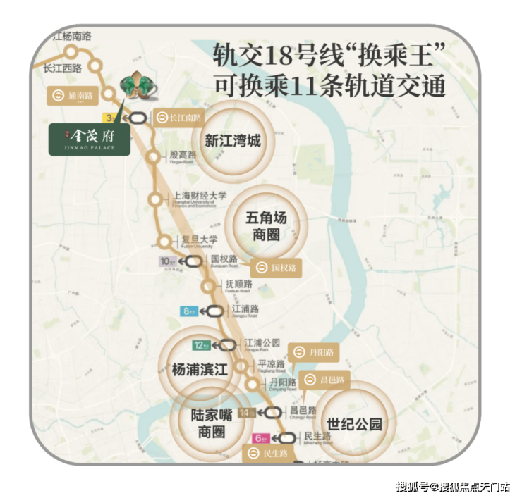 一方面是18号线“含金量”很高,3站财大,4站复旦,并经过杨浦滨江、陆家嘴等CBD,是科创、教育、金融产业高度集中的一条轨交线,而且18号线二期今年底即通车——在江湾金茂府交房前就能通车,大大缩减“需要等”的时间。