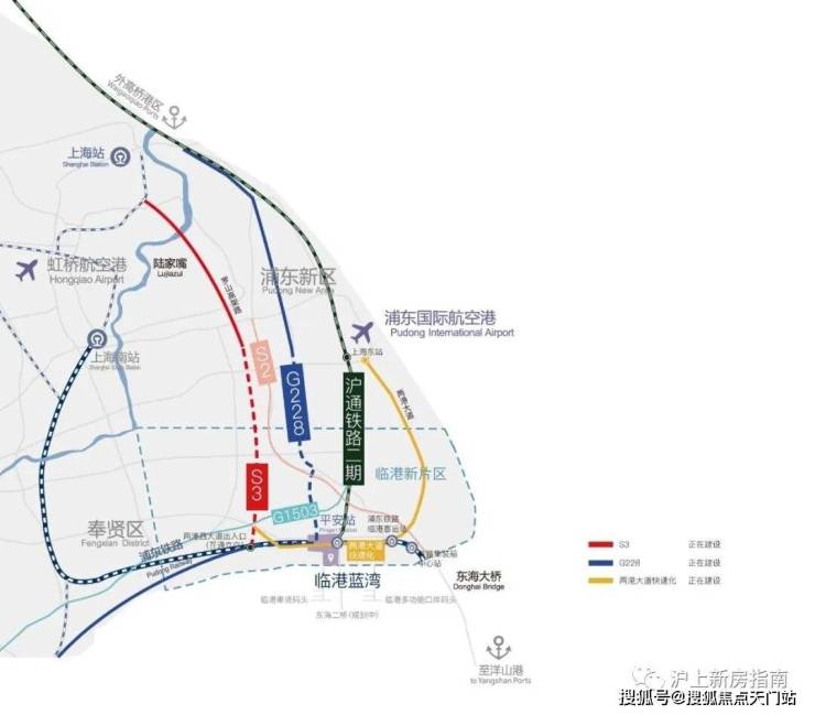 轨道交通16号线、27号线(招标中);南枫线、曹奉线(规划中)S2、G1503、S3沪奉高速(在建);六大交通线路,形成通达全球的门户枢纽,三横两纵深度串联全球城市格局;