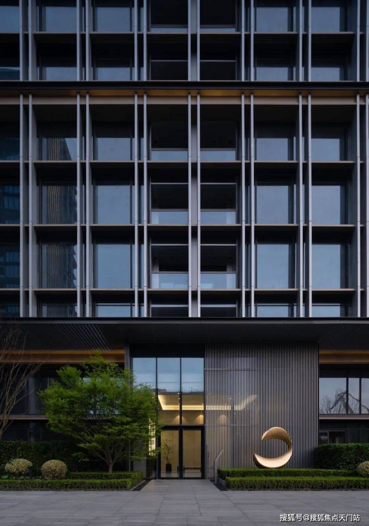 世博天悦采用类公建化立面,通过大面积玻璃设计和开放式铝板密拼工艺,一同拼接出美轮美奂的建筑轮廓,同频全球顶豪作品。