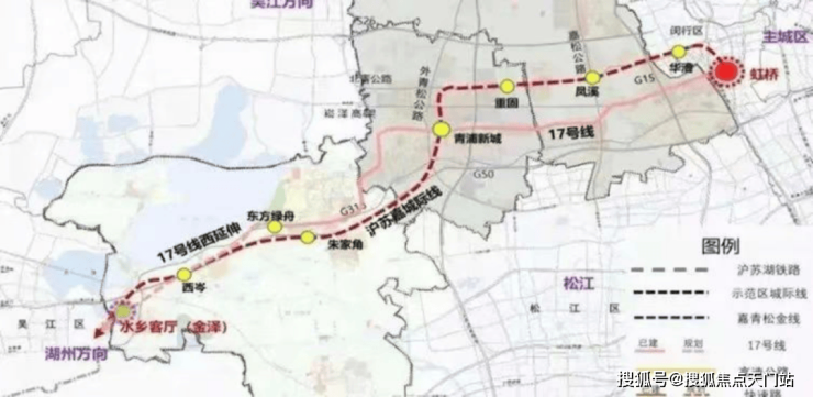 上海示范区线开工仪式于7月13日举行。线路途经青浦区、闵行区,全长49.122公里,建设工期6年。途径芳乐路、徐乐北路、赵重公路、华青路、青浦新城、朱家角、西岑、水乡客厅8个站点。