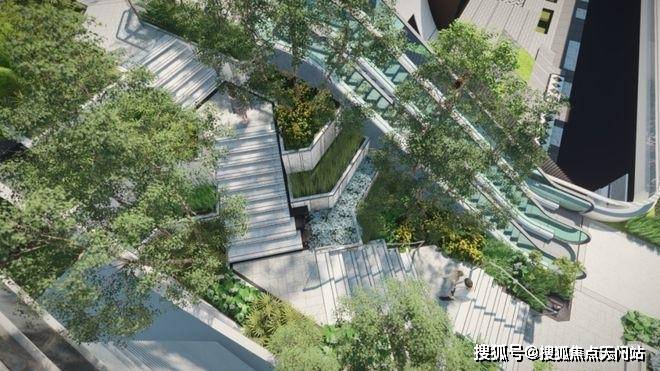 值得一提,项目高线公园打造“三大花园·六大游园”体系,提供丰富的体验场景,而在楼王东侧就是三大花园的其中之一,也是艺术感最强的一个花园,将结合艺术装置和台阶,为业主提供舒适闲坐、眺望树冠景观的空中露台。