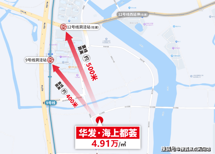 华发·海上都荟直线距离9号线洞泾站 约400米 ,直线距离12号线洞泾站 (西延伸线在建中) 约500米 ,都能实现步行进站,双地铁口红盘之名当之无愧!