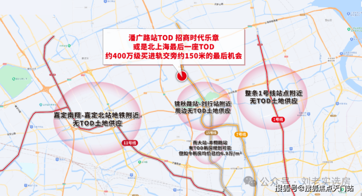 纵观整个北上海的所有400-600万级置业地的轨交站点, 还有条件建造TOD、建造直线约150米进站轨交盘的土地,寥寥无几甚至不会再有。