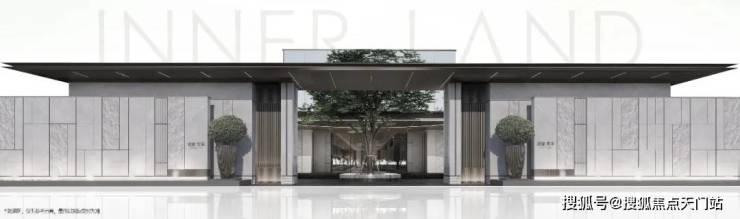 40米恢弘尺度大门,奢选石材搭配鎏金铝板