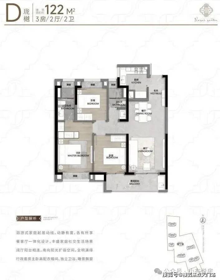 动静分离+客餐厅一体化设计,功能区和休息区互不干扰,客餐厅、厨房等公共活动区集中在一侧,卧室等休息区全部一侧,保证了私密性!