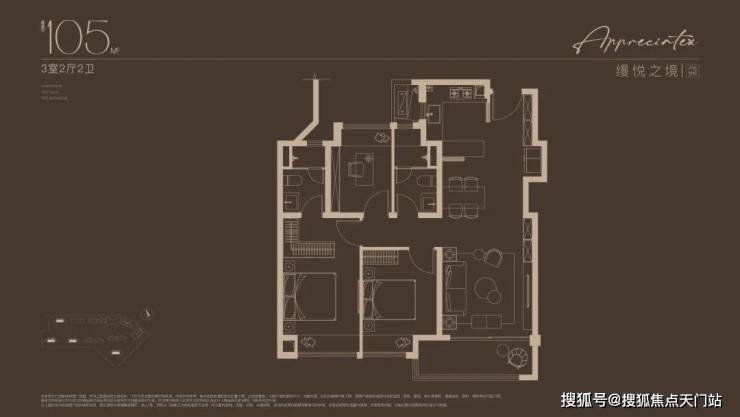 建面约105㎡3房户型,总价400万级即可上车!堪称同等总价段的改善天花板!三开间朝南,约9.6米大尺度南向面宽,最大程度揽光入室;客餐厅一体化 ,连接厨房和南向阳台,动线流畅,也是更大的欢乐聚场;创新研发S墙设计,预留冰箱专属位置,释放厨房使用空间 ;主卧套房设计,奢享独立卫浴和衣帽间,尽享尊崇。