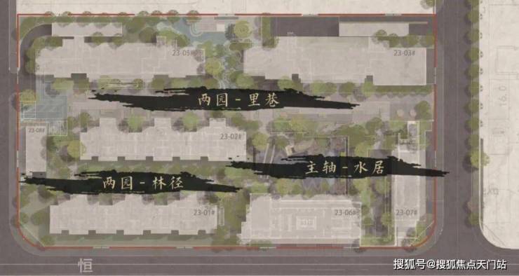 两园:里巷和林径是项目的两个特色园区。里巷延续上海曲径通幽处的回忆,形成功能丰富的归家礼仪空间;林径对上海梧桐栖路的重温旧梦,营造一条宁谧、和煦的归家小径。