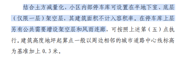 简单讲,就是如果你把地库建在“架空层”下面,这部分面积不用算进容积率,也就是——开发商不用因为多做了这些空间而少盖房子,还不用多交土地出让金!
