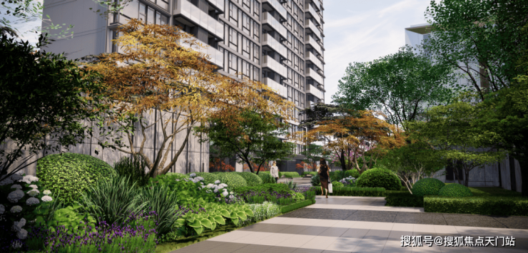 坐落于社区中轴线正中的央景楼座,是园林景观最为集中、生活最为静谧的区域。