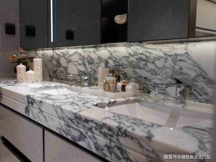 区别于其他同类产品,通常只配置四件套,或者采用石英石、人造石台面的做法,誉静安这次在精装上下足了功夫。